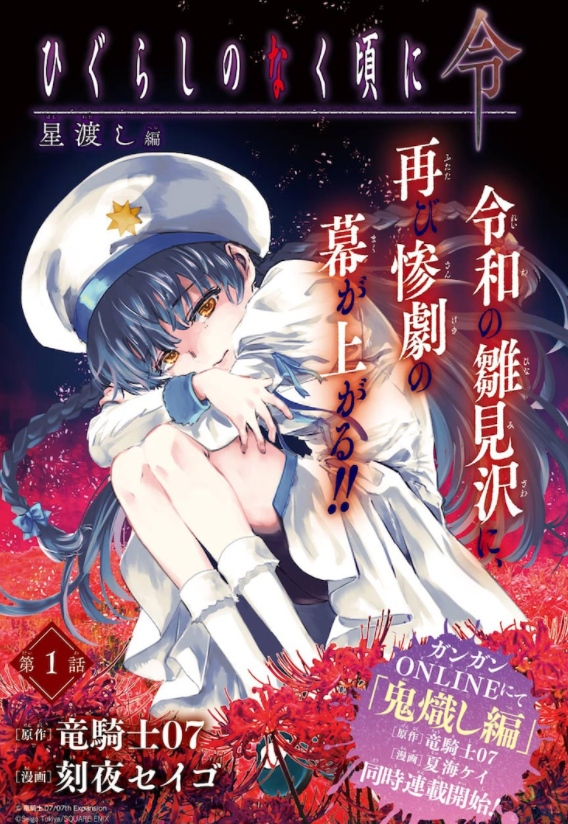 由龙骑士07原作、刻夜清吾作画的漫画《寒蝉鸣泣之时令 星渡篇》和由龙骑士07原作、夏海启作画的漫画《寒蝉鸣泣之时令 鬼织篇》目前已经开始连载。